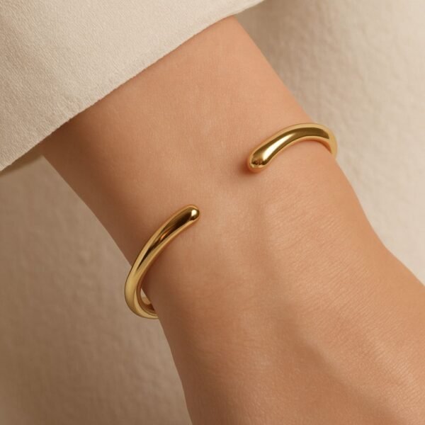 •Design: Minimalist open cuff with a gently rounded shape