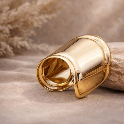 Bold waveform cuff gold bracelet